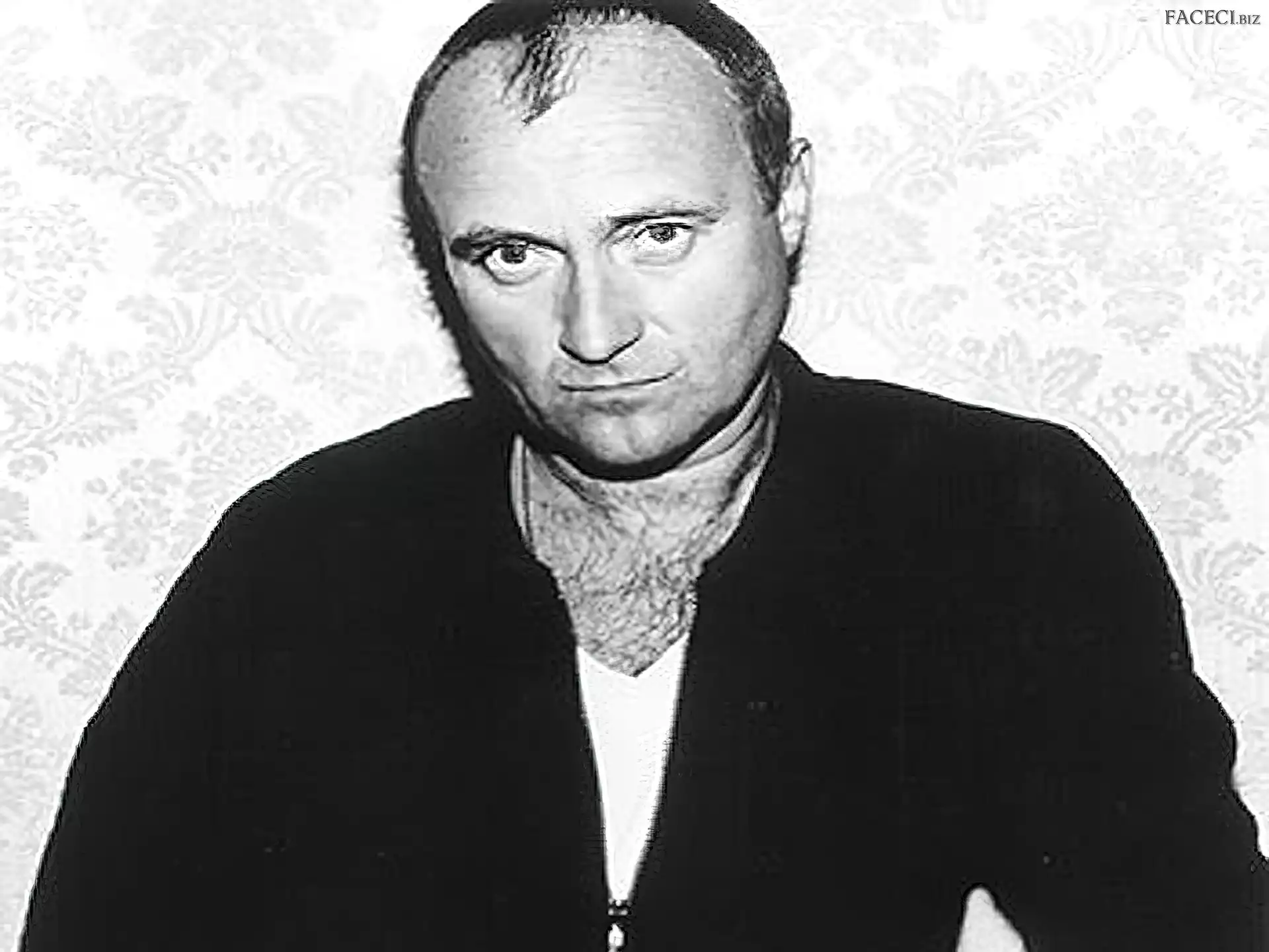 Twarz, Phil Collins Philip David Charles Collins Philip David Charles Collins Mikrofon, Phil Collins Gwiazda, Phil Collins Mikrofon, Phil Collins Oczy, Phil Collins Podkoszulek, Phil Collins, Biały